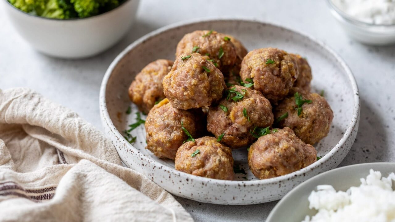 Pork Meatballs Pork Meatballs are juicy, flavorful, and easy to make with simple pantry ingredients. Baked in the oven for...